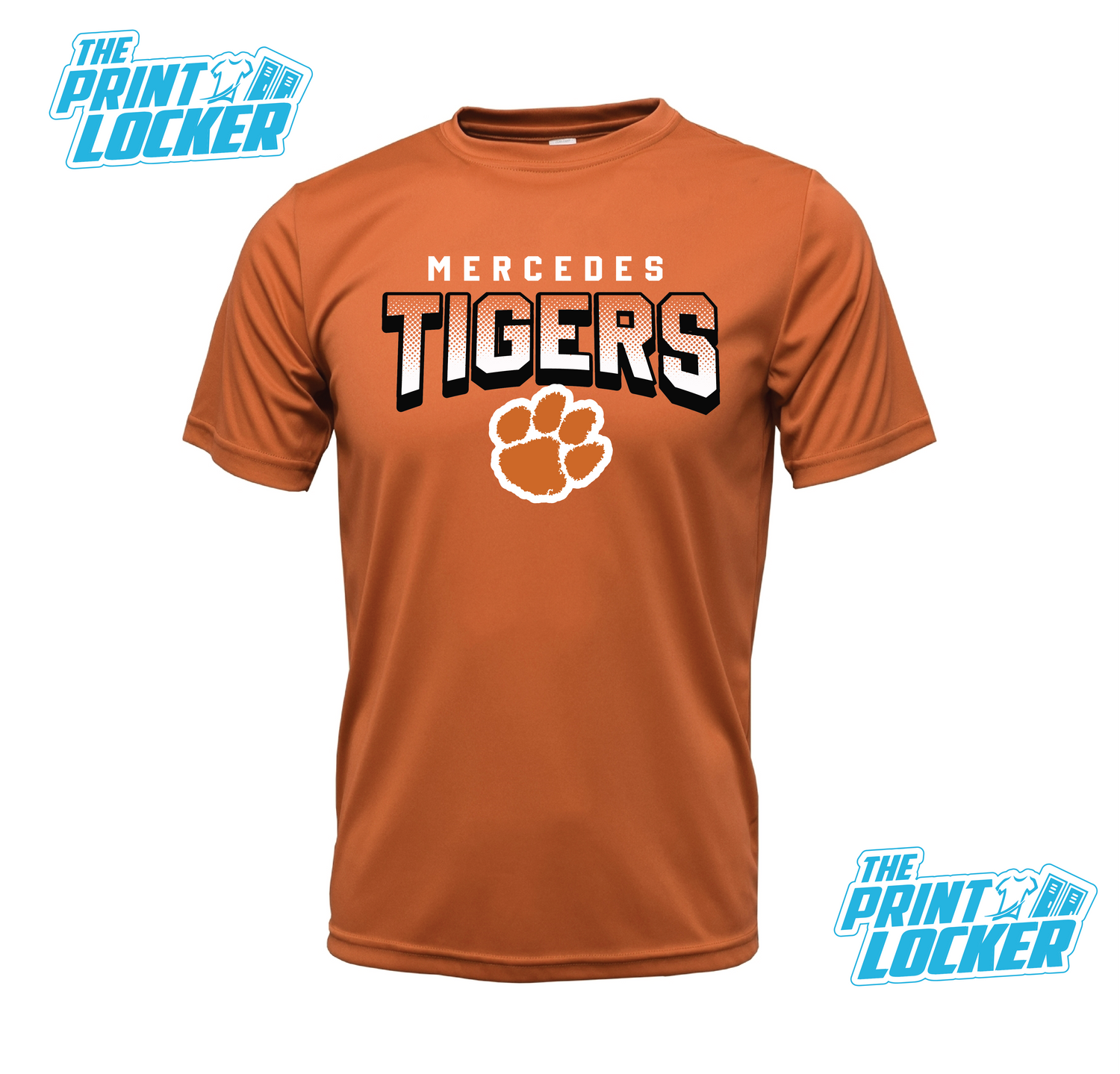 Tigers Halftone Design Drifit Short Sleeve - youth xs / Burnt Orange is backordered and will ship as soon as it is back in stock.